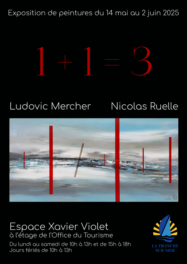 EXPOSITIONS VISITER EN VIDEO VISITER EN VIDEO 2025 MAD’ARTS SUR VIE Le Poiré-sur-Vie du 28 au 30 novembreVENDEE ART SHOW Palais des congrès des Atlantes Les Sables d’Olonne les 31 octobre, 1er et 2 novembreArtistes pour l’Espoir Chantonnay du 25 octobre au 11 novembreS.A.C.R.E. Salons des Arts Contemporains aux Haras de Vendée du 13 au 15 juinExposition « 1 + 1 = 3 » avec Nicolas Ruelle à l’office du tourisme de La Tranche-sur-Mer du 16 mai au 2 juinPict’Art Expo – Le Bernard33ème salon « ART et VIE » de Belleville-sur-Vie 2024 Salon d’automne – La Tranche-sur-Mer, FrancePassions croisées – Les Sables d’Olonne, FranceÉchanges de Regards – Aubigny, France 2023 Lion’s Club – Jard-sur-Mer, France 2022 Discovery Art Fair / Stand Singulart – Köln, Allemagne 2019 Galerie Pélagie – Ile d’Yeu, France 2017 Exposition personnelle / Panorama / Côté Sud Expo – La Roche-sur-Yon, France 2016 Galerie m² – Challans, France9ème Salon Melusin’art / Nef Théodelin – Vouvant, France 2015 Exposition personnelle / Somewhere / Groupe Y – Niort, FranceExposition personnelle / Spaces / C.I.E.M. – Paris, France 2014 Grand Marché d’Art Contemporain / M.I.N. – Nantes, FranceGrand Marché d’Art Contemporain / Bastille – Paris, France 2013 Grand Marché d’Art Contemporain / Bastille – Paris, FranceGalerie Art Home – Bordeaux, France 2012 Galerie Open Art – Dijon, FranceGrand Marché d’Art Contemporain / Bastille – Paris, France 2011 Exposition personnelle / Voyage transversal / Galerie Art Génération – Paris, France 2010 Galerie Zee Art – Strasbourg, France 2009 Salon Affordable Art Fair – Paris, FranceGalerie Art Génération – Paris, France 2008 Galerie Art City – Paris, FranceGalerie Artwist – Paris, FranceGalerie Xavier Nicolas / Carré Rive Gauche – Paris, France 2007 Galerie Just’in Art – Grasse, France 2006 Exposition HSBC agence Grande Bibliothèque – Paris, FranceGalerie Araxess – Louvain-la-Neuve, Belgique 2004 Galerie Lounge Art – Paris, France